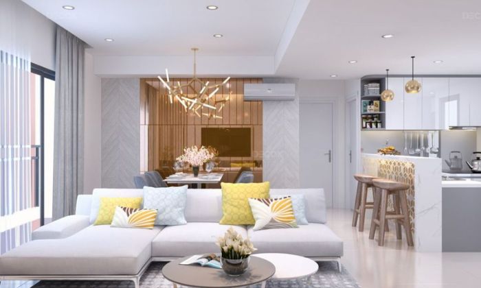 Để tối ưu diện tích trong căn hộ chung cư, gia chủ có thể lựa chọn thiết kế phòng bếp kết hợp với phòng khách, tạo sự liền mạch cho toàn bộ không gian, giúp tối đa hóa diện tích và thuận tiện di chuyển.