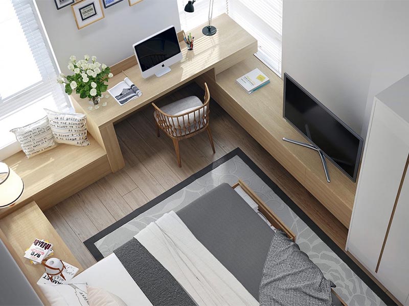 Với một căn phòng ngủ có diện tích eo hẹp, tính khoa học trong bố trí, lắp đặt đồ dùng nội thất luôn được ưu tiên đặt lên hàng đầu. Bởi vị trí của những vật dụng nội thất sẽ ảnh hưởng trực tiếp đến diện tích cũng như sự thông thoáng của căn phòng.